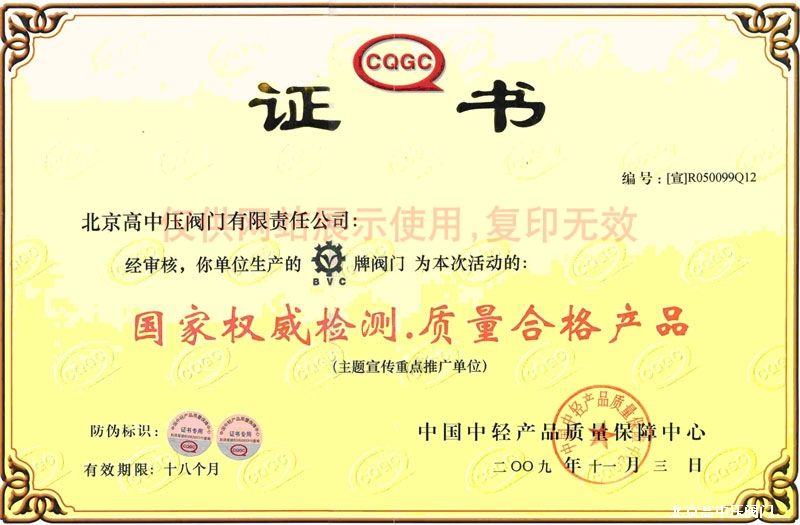 My company took the lead through the ISO9001: 2000 international management system certification, ISO14001 environmental management system certification, Pressure Vessel Safety Certificate, Norway Classification | Agency certification, and the right to operate import and export, to obtain eligibility to enter the international market, the implementation of standards : GB, Germany standard, Japanese standard, British standard. The main products are various types of high pressure ball valve, gate valve, globe valve, check valve, throttle valve, butterfly valve, electric valves, steam traps and other products. The company also produces non-standard, special valves, diameter from 10 mm to 3000 mm, the pressure from 10Mpa - 42Mpa, a total of over two thousand varieties and specifications, widely used in petroleum, chemical industry, metallurgy, chemical fiber, urban construction, power , water, building materials, cement and other industries, and China's CNPC, China Petroleum & Chemical Corporation, National Power Company and other units of materials collected? purchase suppliers. Trusted by the user and welcome. Some products have successively won the national silver medal, the National Key New Product Award and other honors.