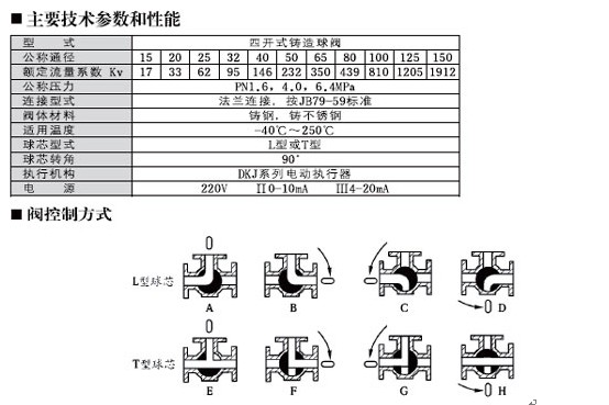 電動三通球閥由DKJ電動執(zhí)行器和三通球閥組成,選用獨特的三通四相密封結(jié)構(gòu),密封平穩(wěn),性能可靠。三通球芯分T型和L型,使用壽命長,流通能力大,阻力小。T型球芯孔道起分流作用,L型孔道起分配作用。廣泛應用于冶金、石油、化工等工業(yè)領(lǐng)域。 |