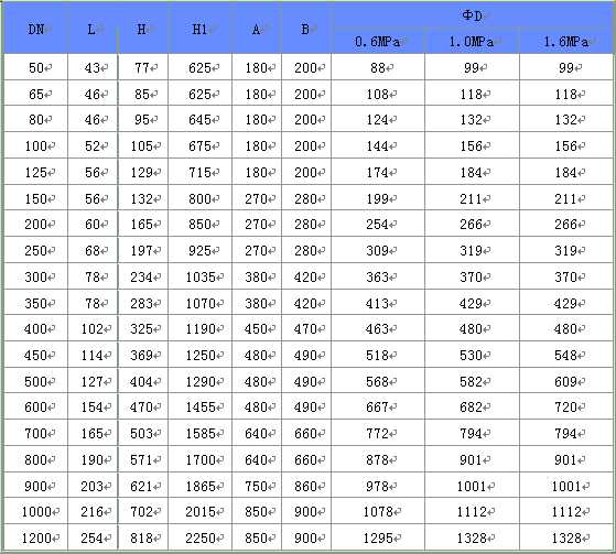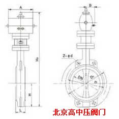 氣動對夾式軟密封蝶閥主要外形連接尺寸(單位:mm)