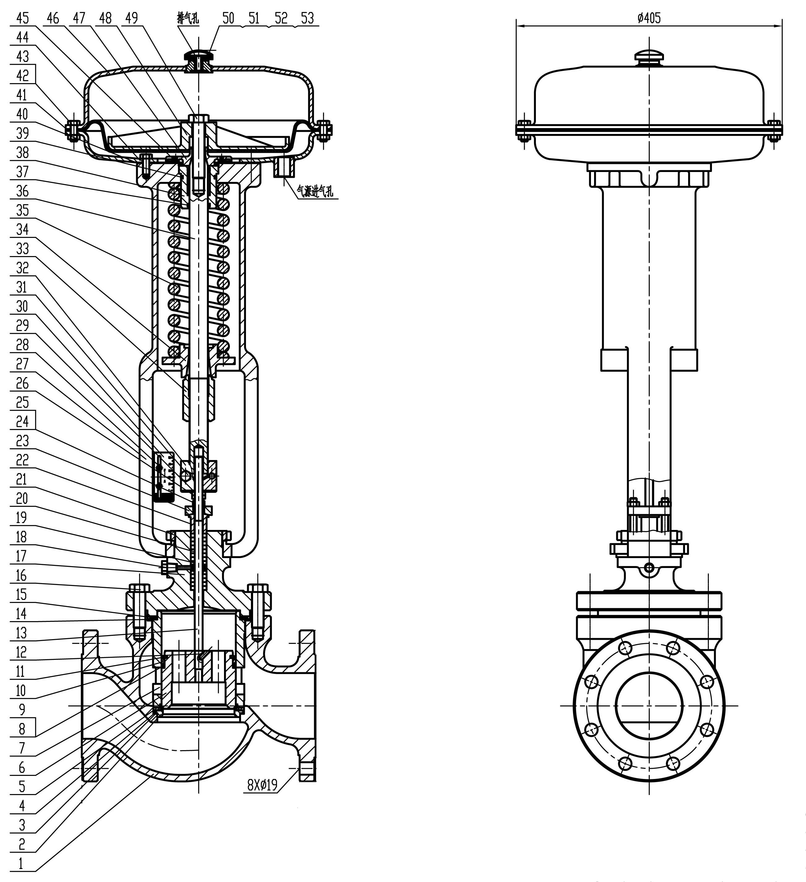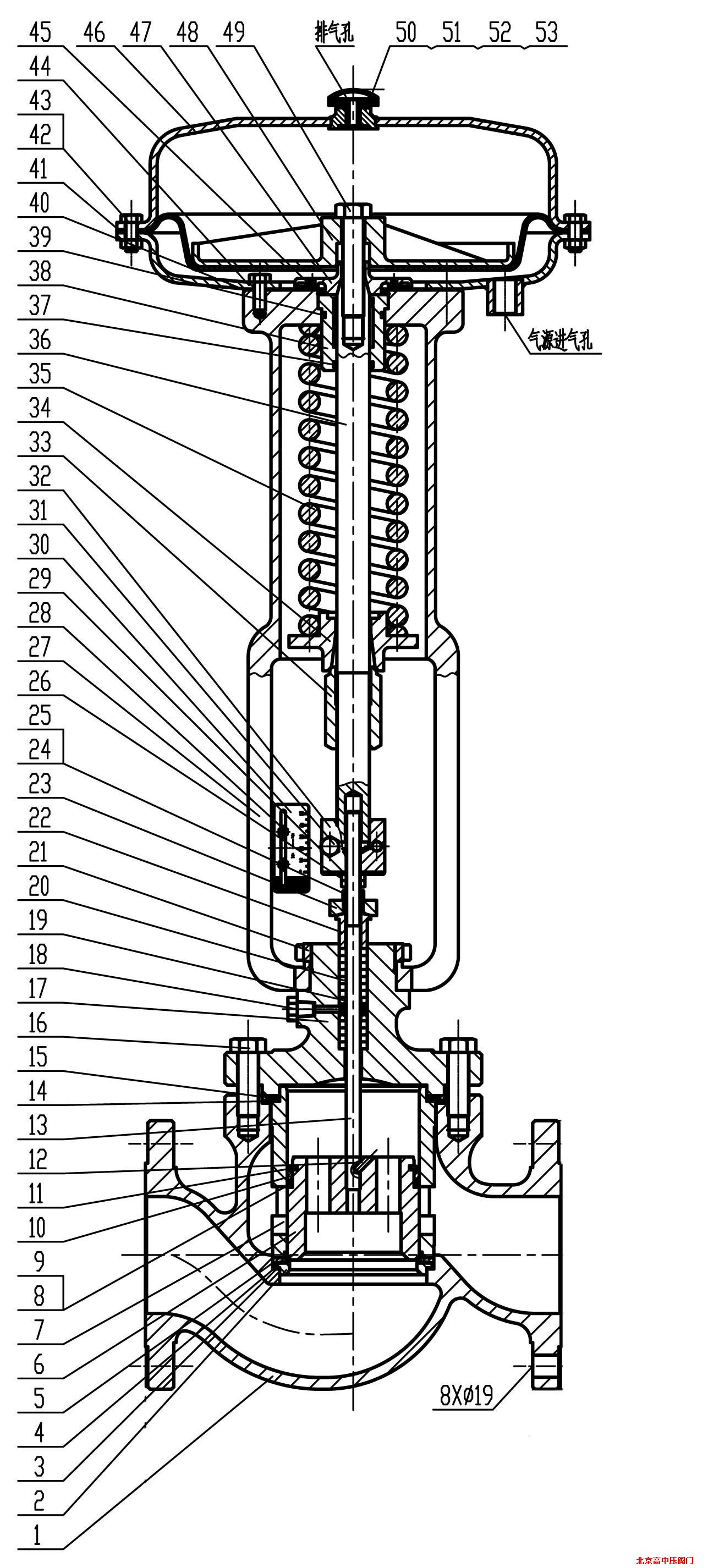 1、閥門依靠氣源壓力來實現(xiàn)閥門開啟,彈簧反作用力將閥門關閉。