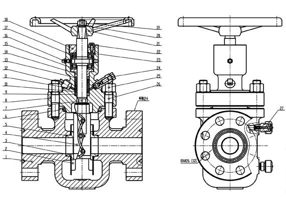 5.手輪順時針旋轉,閥桿梯形螺紋推動閘板向下移動。右閘板端部頂到閥體底部凸臺,左閘板、右閘板沿144°斜滑面相互向左、右撐開貼緊閥座、密封圈,閥門關閉,形成閥門進口出口雙向密封。逆時針旋轉時,閥梯梯形螺紋帶動玄力閘板向上移動,同時閘板兩側彈簧合力,將閘板撐開間隙收攏,閘板與閥座密封圈相互無摩擦,閘板導流孔對準閥體通道,閥門則開啟,閥門使用壽命長。 |